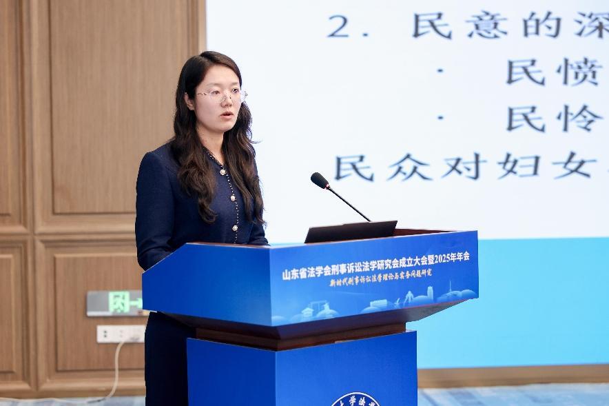 “专题四:学科交叉视域下的刑事诉讼法学研究”研讨环节由山东省刑事诉讼法学研究会新任副会长、青岛大学法学院王静教授主持,鲁东大学盈科法学院李艳霞教授、山东建筑大学法学院马聪副教授、山东警察学院法律部王伟副教授、山东大学纪检监察学院于立强老师先后以“胶东革命根据地人民检察制度的精神特质及其启示”“论刑法机能在黑社会性质组织犯罪惩治中的平衡”“浅析涉黑社会性质组织犯罪的认定标准和侦查思路”“刑事司法指导性文件法律修辞失范之检讨”为题展开报告。山东省人民检察院第三检察部袁春鹃副主任、山东法官培训学院陈维飞老师参与与谈。
